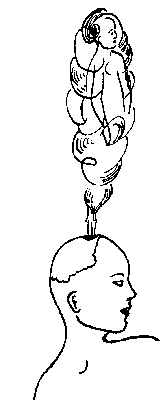 von M. Speich):"Dann fühlte ich mich plötzlich, wie ich vielleicht 10 - 20 cm hoch über mir selber horizontal schwebte. Aber gleichzeitig fühlte ich einen ebenso starken Zug zwischen meinem physischen und meinem "astralen" Kopf. Ich bekam die Vorstellung von "weißen, elastischen, flachen, nach unten verbreiterten Gummibändern". Es war nicht angenehm. Der Druck ging über in ein dumpfes Klopfen und die Bänder waren ganz straff gespannt. |