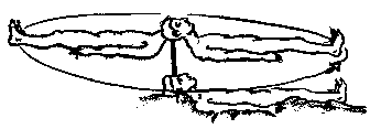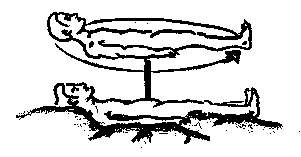 des Fluidalkörpers "Schon längere Zeit auf dem Rücken liegend, um die Ischiasschmerzen zu lindern, pendelte ich zwischen Wachsein, Halbschlaf und Schlaf. Auf einmal empfand ich, wie ich mich emporhob (mit dem feinstofflichen Körper) und langsam über dem materiellen Körper waagrecht zu rotieren begann, mit dem feinstofflichen Kopf als Achse. Durch dieses Ereignis aufmerksam gemacht, steigerte sich meine Bewußtheit bis zu einer tagwachen Beobachtungsfähigkeit. Nun versuchte ich die Rotation zu beschleunigen, in der Hoffnung den Fluidal dadurch vom materiellen Körper frei zu bekommen. Der Fluidal rotierte nun rasch, blieb aber weiterhin gebunden." (Bal) |