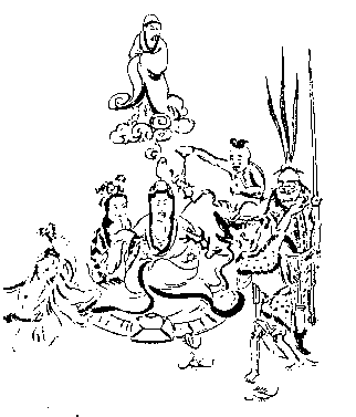 die Götter auf die Erde hinab und die Menschen (Schamanen) zum Himmel