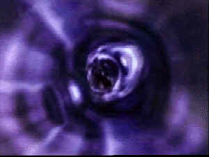 D: "Eine Zeit hindurch konnte ich beim Versuch zu visualisieren hin und wieder bemerken, daß sich das Bild eines Tunnels mehr oder minder aufdrängte. Wenn sich das Bild nicht von selbst konkretisierte, brauchte ich bloß einen Punkt zu fixieren, diesen nach außen zu projizieren und schon bildete sich eine Art Tunnel, in welchen ich auch hineinsehen konnte. Das Ende des Tunnels war mitunter ein heller bis lichter Fleck, manchmal auch schwarz. Die übrigen Farbtöne bestanden in Grautonschattierungen. Auffallend für mich war, daß es mir damals leichter fiel, diesen Tunnel entstehen zu lassen, als irgend ein Bild oder eine Farbe zu visualisieren. Einmal stellte ich auch fest, daß dieser Tunnel um seine eigene Achse rotierte, was mich irgendwie an ein Chakra erinnerte.