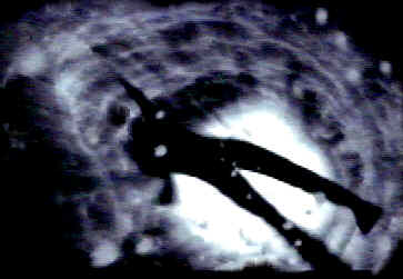 Dann erblickte ich vor mir die leuchtenden Konturen einer stilisierten Blume. Kurz darauf nahm ich Licht wahr, in der Art, wie ich es letzte Zeit öfters sehe. Diesmal aber war das Licht deutlicher und leuchtender als sonst. Es war ein leuchtender Fleck ohne scharfe Begrenzungen. Daran anschließend tauchte in verschiedenen Grautönen, aber deutlich in der Struktur, ein Tunnel vor mir auf, in welchen ich von innen her hineinschaute. Die Form erinnerte mich am ehesten an einen Wasserstrudel, wobei das in früheren Erlebnissen gesehene dünne Ende sich anscheinend hin und her bewegte und schließlich in einer leichten Krümmung zum Stillstand kam. Diese Biegung machte es mir allerdings unmöglich, das andere Ende des Tunnels zu sehen."