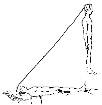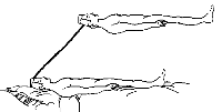 Rückenlage, nach Möglichkeit auf dem harten Boden, mit einem harten nicht zu dicken Polster als Kopfstütze. Zur Verbesserung der Entspannung wird die Wirbelsäule gedehnt, indem wir uns mit den Fersen in den Boden hacken und dann versuchen durch Anziehen (mit Bodenkontakt) und Strecken (ohne Bodenkontakt) der Fersen mit "dem Unterkörper Richtung Füße wegzukriechen", während die Schultern fest am Boden liegen bleiben.