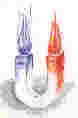eines Magneten wird von Sensitiven als blau/violett, der Südpol als