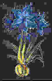 Blüten ist funkelnd, die Mitte hellblau. Zum Stengel zu wird die Blüte