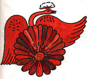 Vayu, 1975 "Nach der Meditation, in welcher die Kundalini aktiviert wurde und ca. 20 cm aufstieg, legte ich mich schlafen. Im Traum sah ich einen leuchtend feuerroten Vogel, von sehr großer Schönheit und freundschaftlicher Zutraulichkeit. Er hatte seine Flügel ausgebreitet und seinen Schweif zu einem Rad entfaltet." Deutung: Sein Radschwanz befand sich am Ende der Wirbelsäule, dort, wo beim Menschen das Muladhara Chakra sich befindet. Im Vergleich zu Pflanzen, die vegetative Kräfte symbolisieren, symbolisiert ein Vogel als Tier eine dynamische Kraft. |